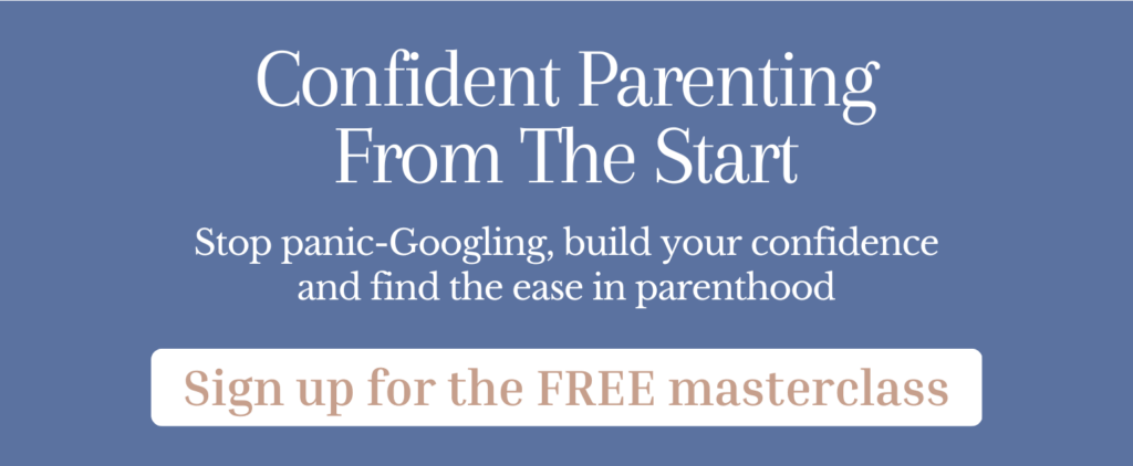 If you are a new parent, finding your confidence can take some time. After all, babies don’t come with a manual, and that adjustment period can be messy and chaotic and stressful at times. But there are some things you can do that you can understand ahead of time if you’re pregnant or when you’re in the trenches once the new baby arrives. That can help build your parenting confidence. In my free masterclass, Confident Parenting From the Start, I will teach you my confidence recipe with three key elements to pay attention to, plus three things to just let go of that make or break your trust in yourself. In your child’s first year, you will walk away from this 60 minute virtual presentation with actionable tools that you can put into practice right away to challenge your self-doubt, to stop panic, Googling once and for all, and actually find the ease and enjoyment we all wish for in Early Parenthood.